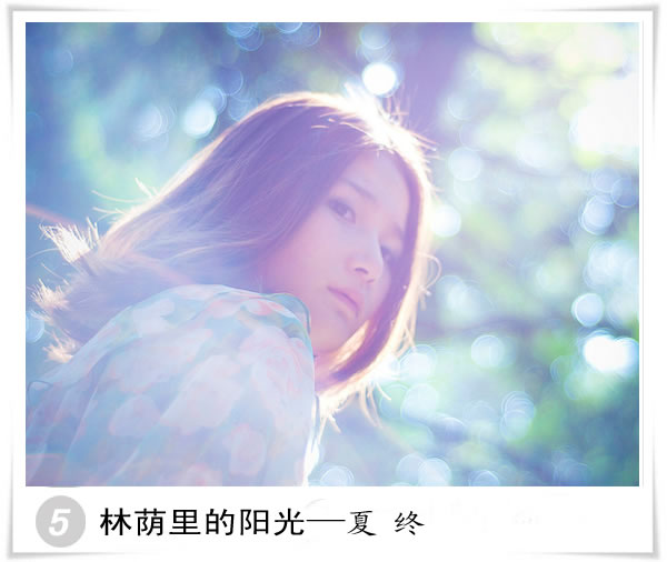 1.光圈还不够理想,尝试采用手动对焦。以最受欢迎的第5张为例,那是很不经意拍摄下来的,当时正穿梭在树林里寻求光影合适的地方,正准备起身,抬头看到姑娘正看着我,便抓下了这张。因为只用到50MM 1.8的镜头,光圈还不够理想,所以采用手动对焦。参数是:光圈1.8, 快门160,ISO 200。